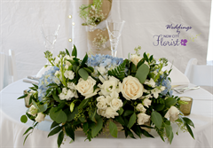 Designed with fresh flowers, this beautiful flower arrangement includes blue and green hydrangea with assorted greens and curly willow inside.